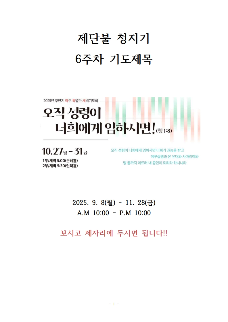 Á¦´ÜºÒ ûÁö±â 1ÁÖÂ÷ ±âµµÁ¦¸ñ(ÇϹݱâ)